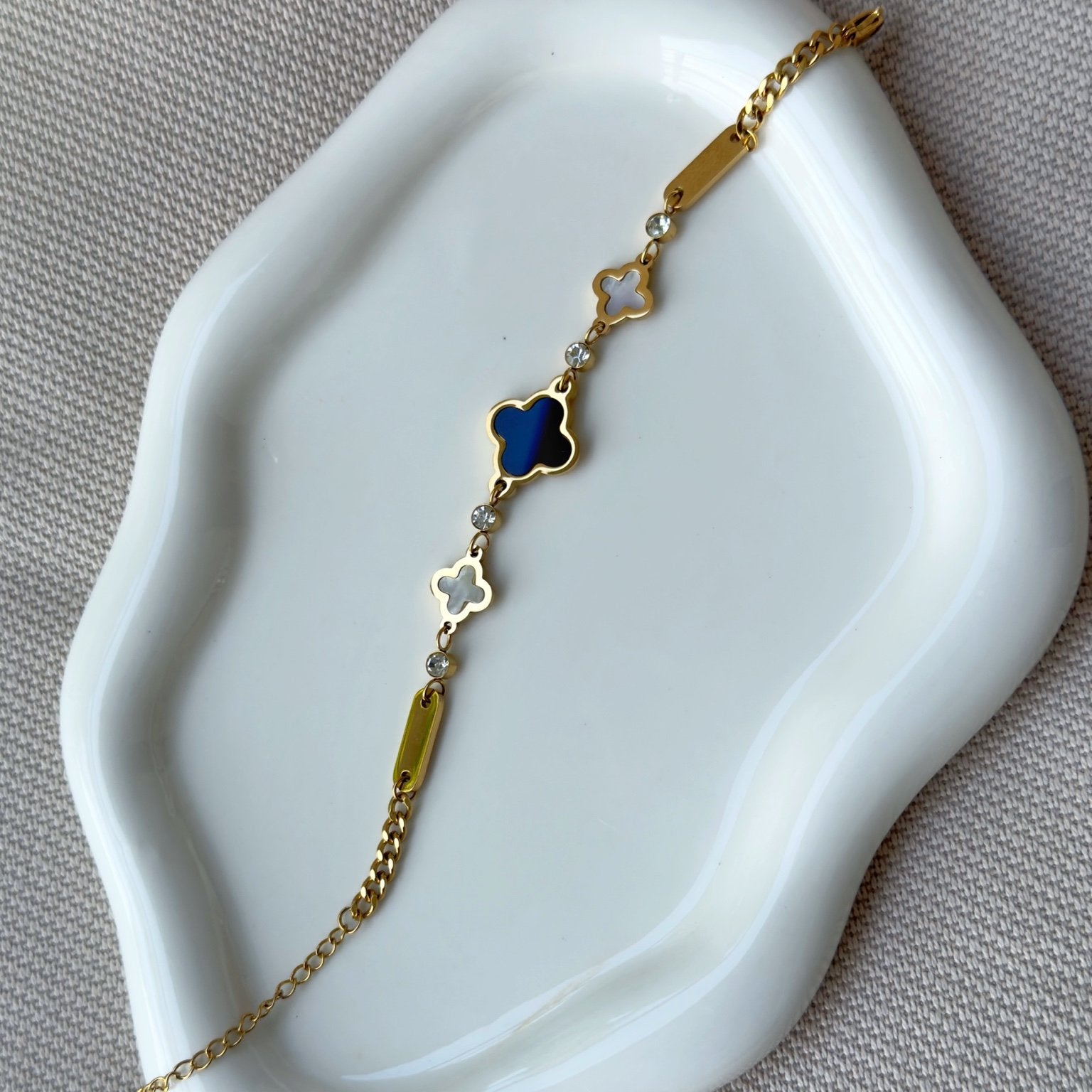 Le bracelet Céline incarne l'équilibre entre l'élégance contemporaine et symbolique intemporelle. Composé d'acier inoxydable, il est sublimé par un placage or 18 carats durable ( PVD sous vide) garantissant éclat et résistance.