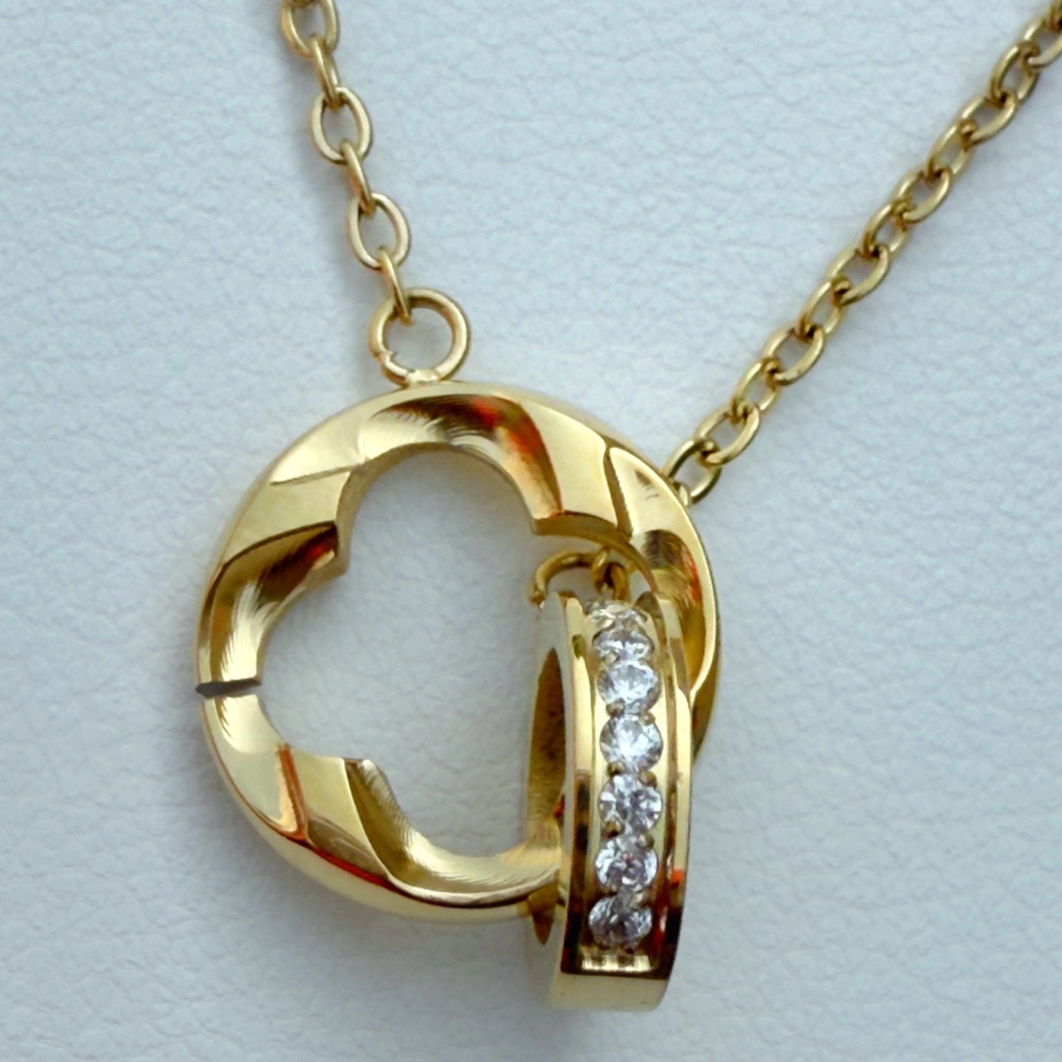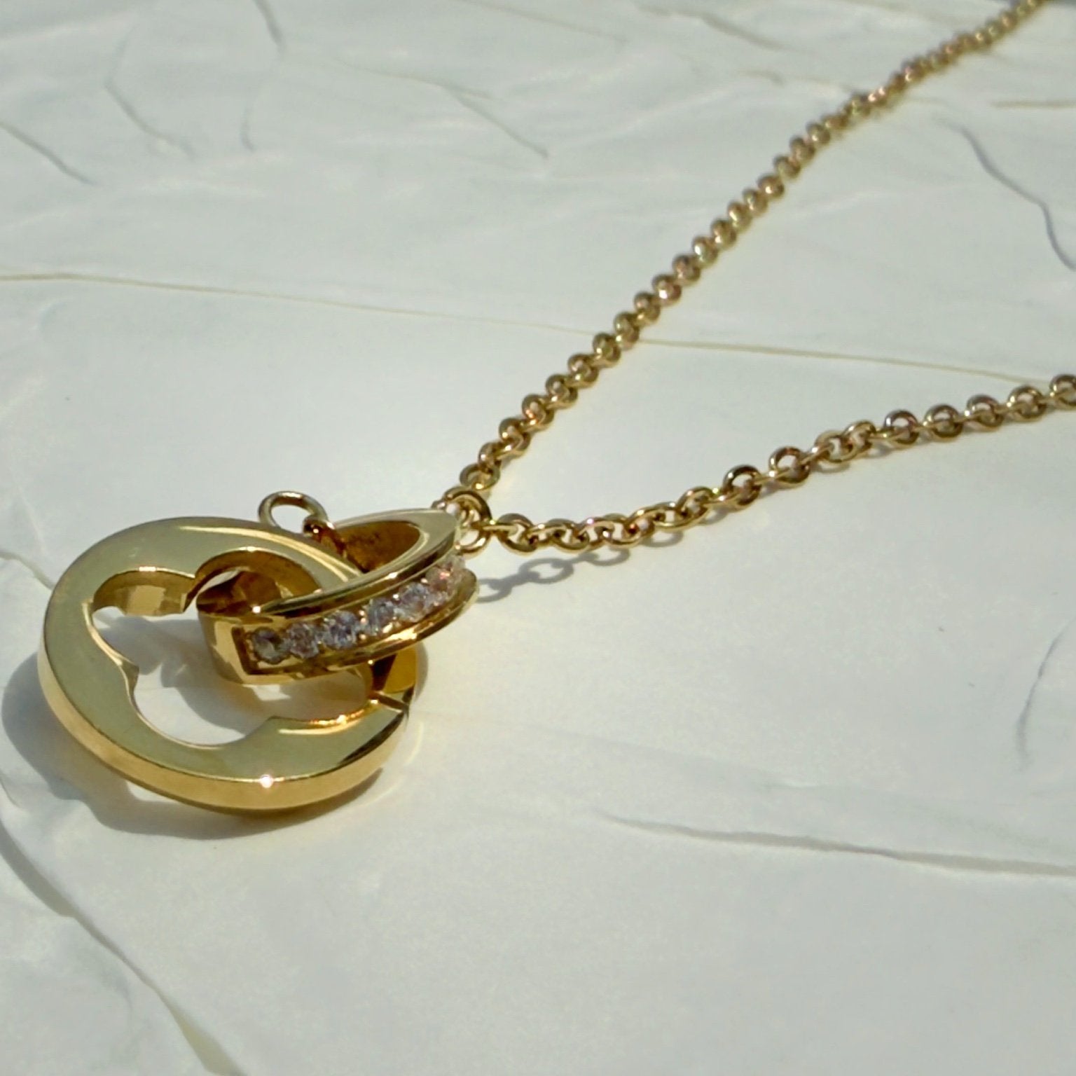 Pendentif: Deux anneaux entrelacés dont un serti de zircons