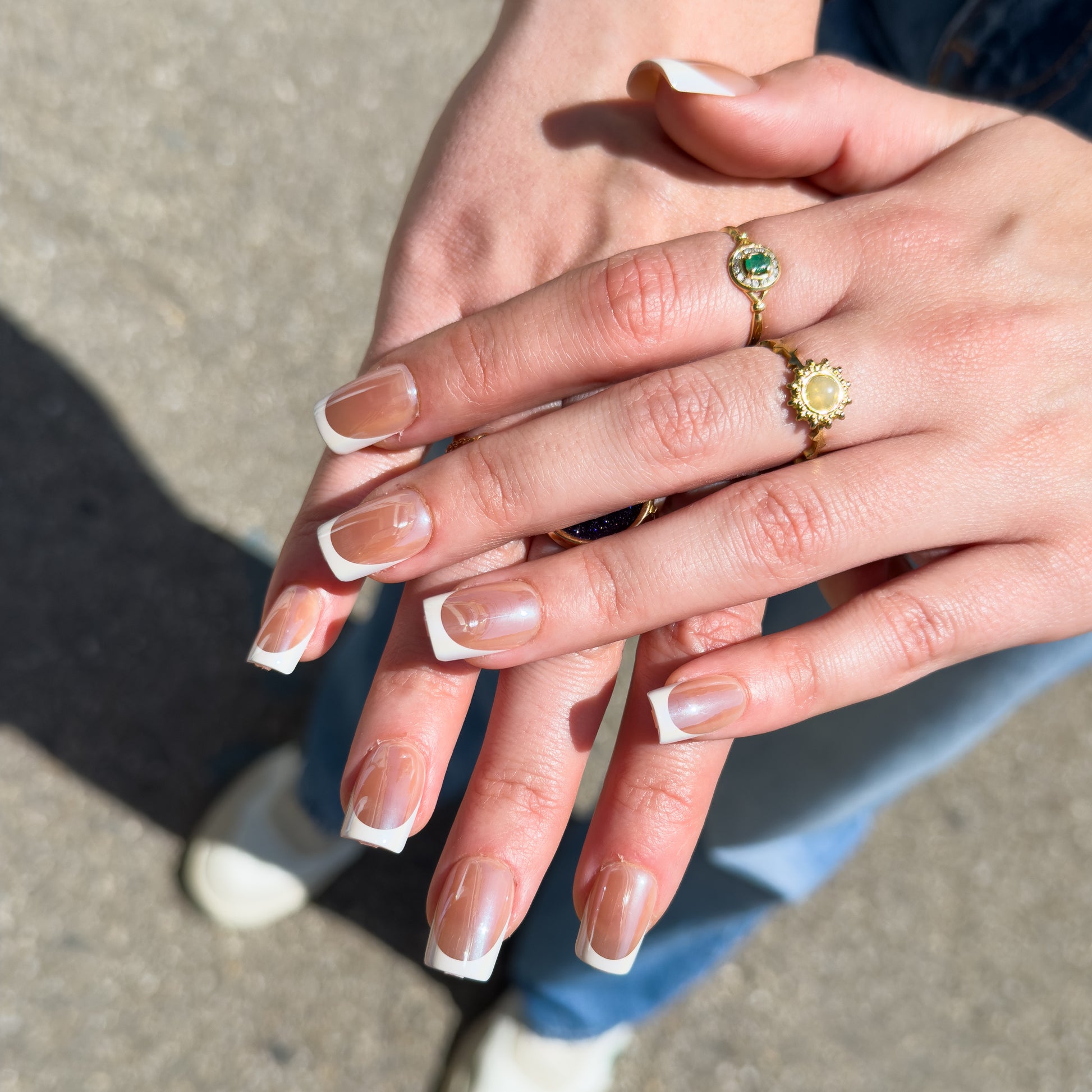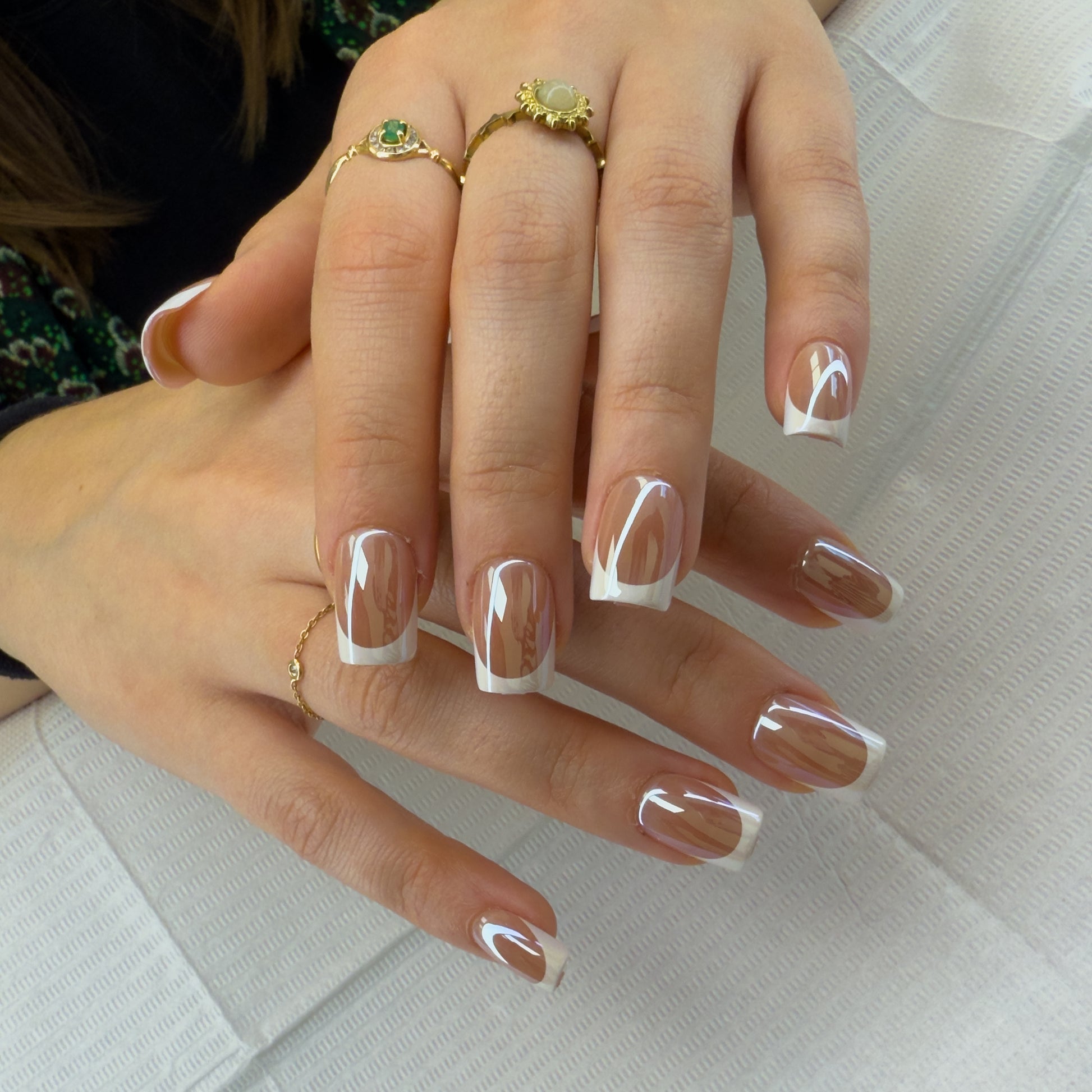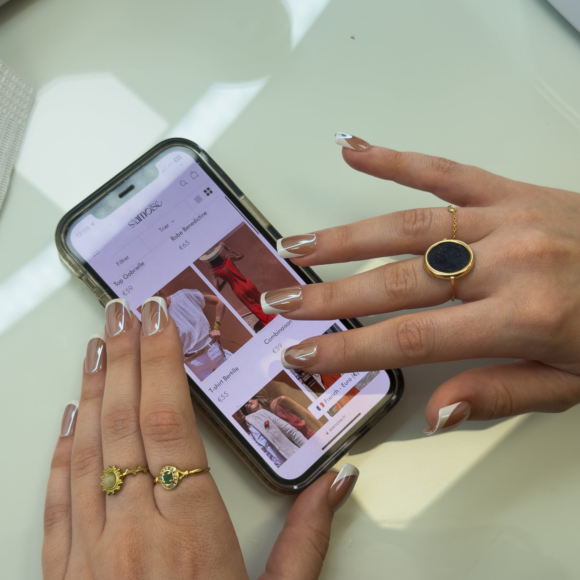 Apportez une touche de sophistication naturelle à vos mains avec Jade. Un set de presse sur ongles effet miroir.