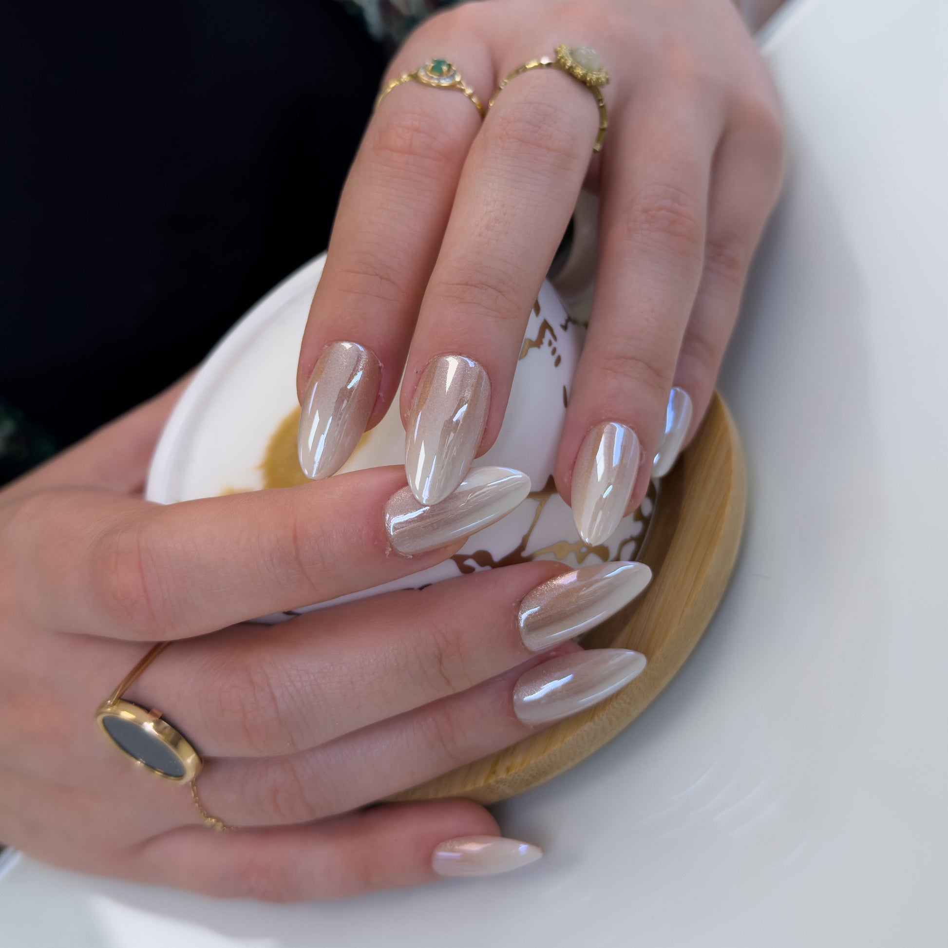 Magalie est le choix parfait pour celles qui aiment les manucures naturelles, brillantes et sans effort. ces press on nails nude effet miroir d'adaptent à tous les styles.
