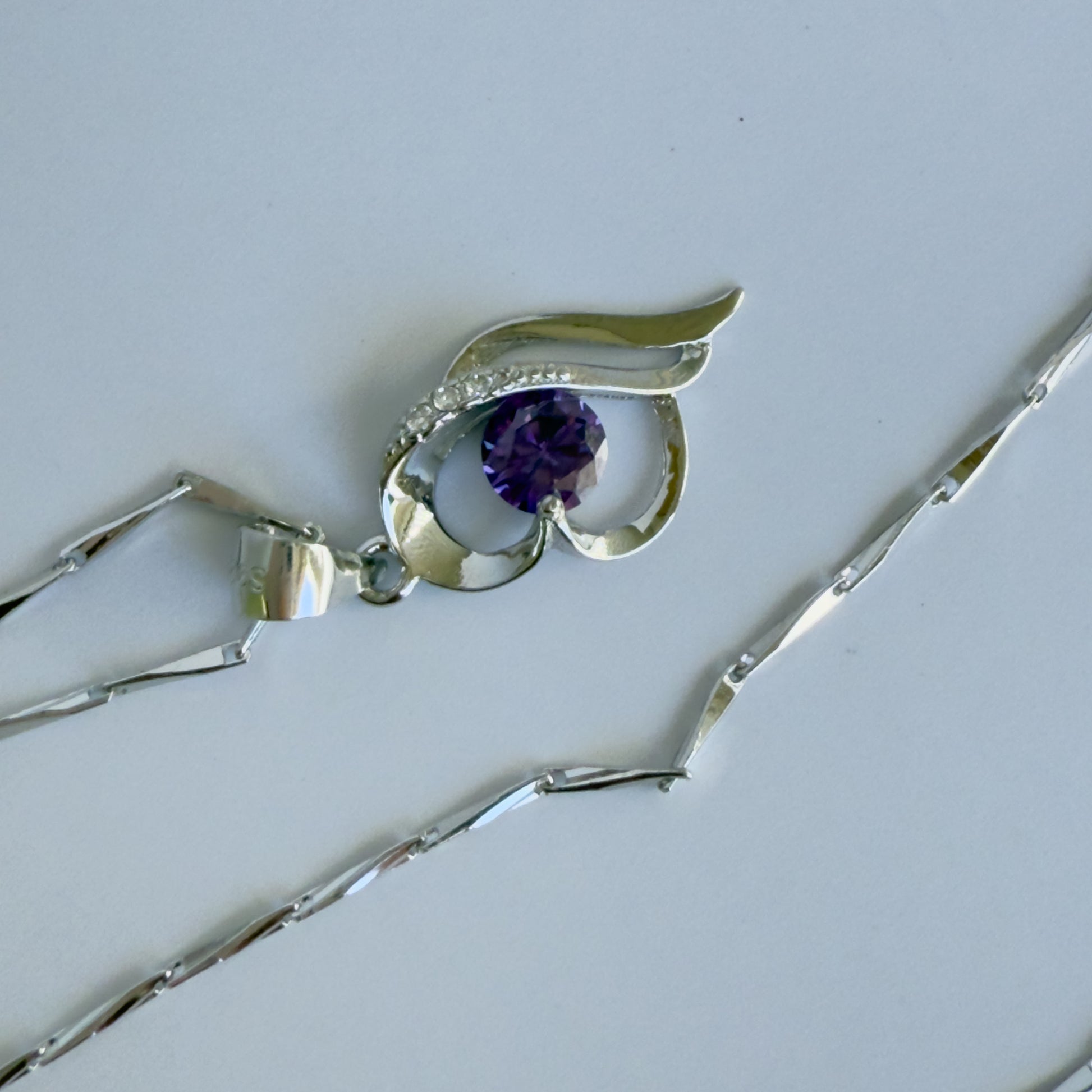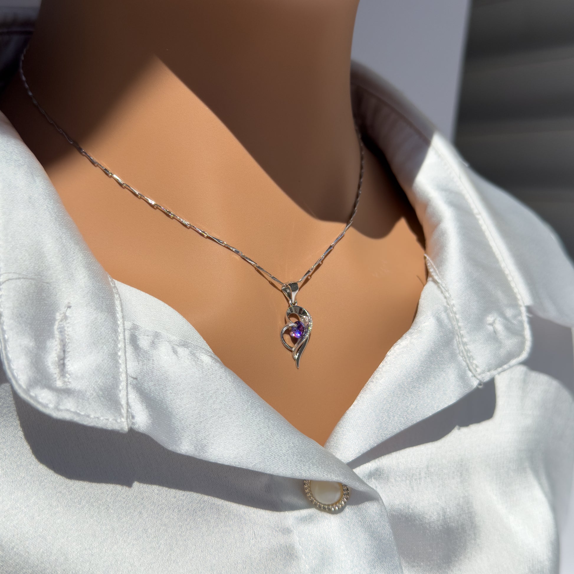 - Pendentif: Forme cœur avec pierre centrale zircon violet